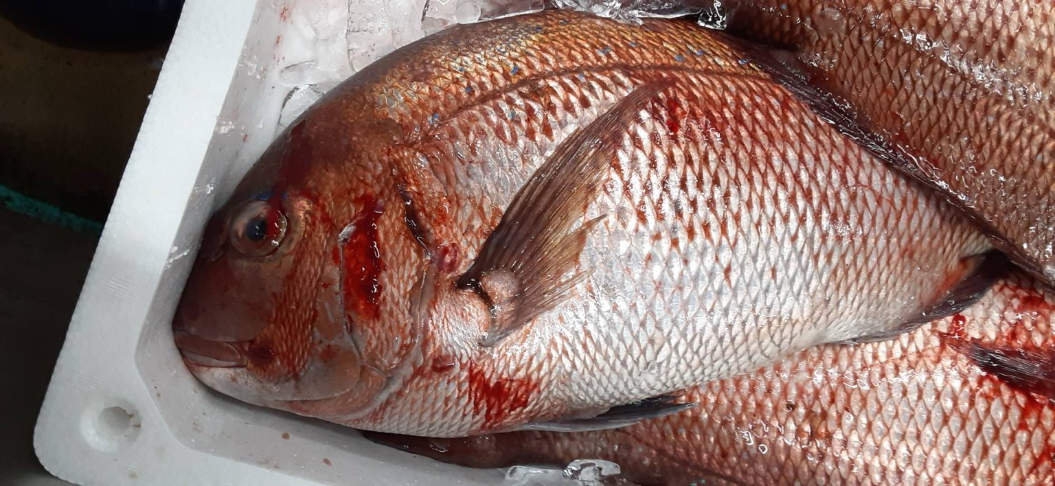 神経締めマダイ❣️ フィーレ出荷可能です❣️ 1尾単位でのご相談にも乗ります💪💪🐟 丁寧に加工出荷します!😄🙌🙌 上から丸の状態→鱗内臓処理→海水氷水で魚体により時間を決めて冷やし込み+再度血抜き→3枚卸→電解水により洗浄→水分拭き取り→真空パック→発送前まで冷蔵庫で温度管理