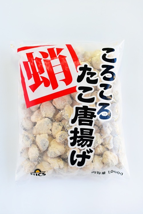 岩ダコの軟骨を使った一口サイズの唐揚げです。 特製スパイス入りの唐揚げ粉をまぶしているので、 そのまま揚げるだけの簡単調理です。 タコ唐揚げ全般的に高い商材が多いので、こちらオススメです。 荷姿:1kgIQFx10