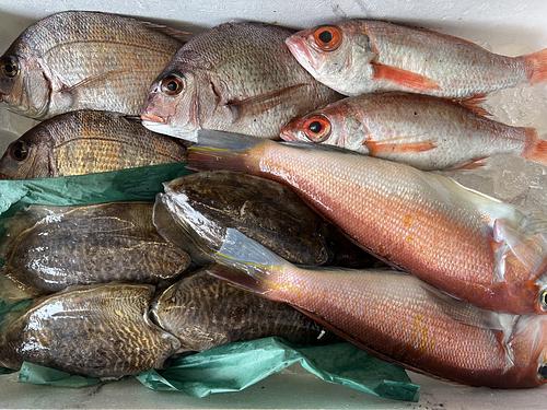 4/10水揚げ 定置網、マダイ、コウイカ 底引き、沖メバル、キツネメバル、アラ