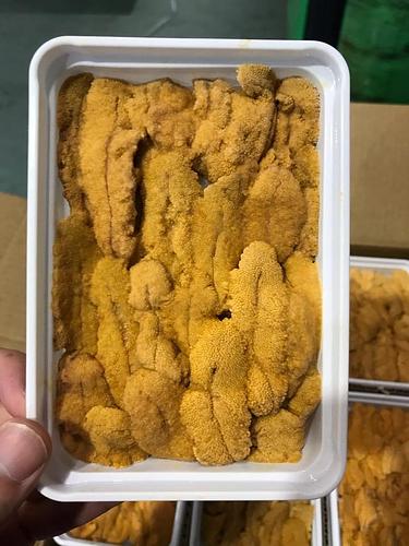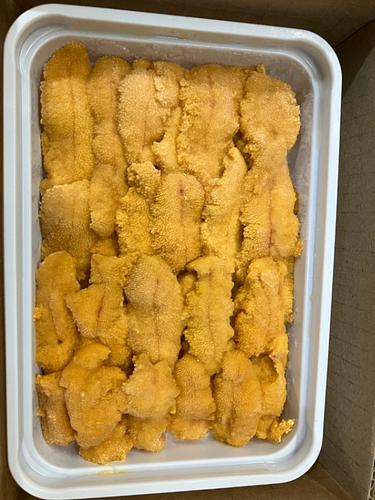 冷凍ウニCになります。 かなり生に近いブランチ処理をしております。 そのため、硬さもあまり感じず、生に近い食感になります。色、味もよく、9月搬入時期まで端境期のため、オススメです!