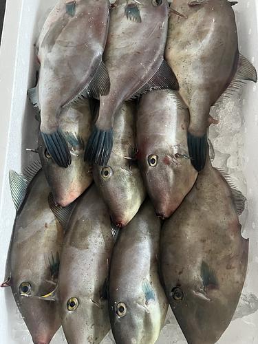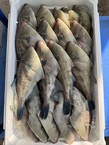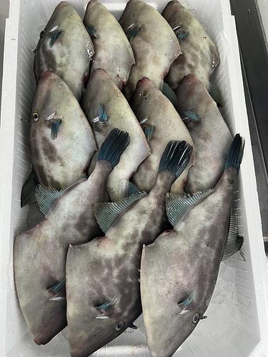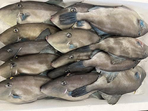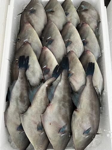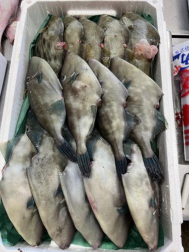 定置網で水揚げされました。 ウマヅラ9尾3.3k カワハギ5尾1.7k