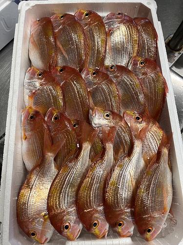 黄色がかった赤色のタイ。市場ではレンコダイと呼ばれることが多いですが、標準和名はキダイ。白身にやや水分量が多いのが特徴です。