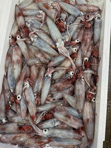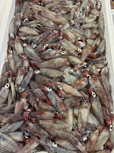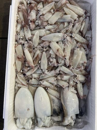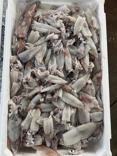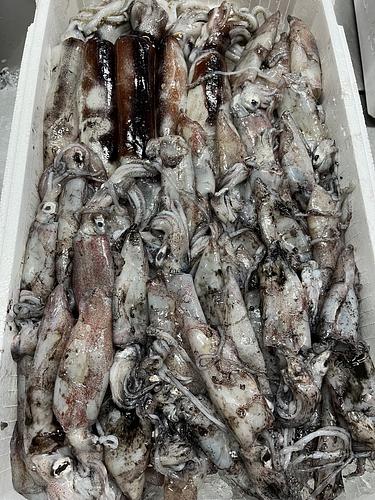 底曳網で水揚げされました。 色目良いですが明日出荷の為色目落ちます。 ケンサキイカ58尾3.6k スルメ5尾1.4k