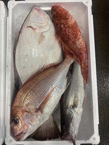 底引き!よろしくお願い致します!ヒラメ2k 真鯛1.38k アラ0.64k おにカサゴ0.8k