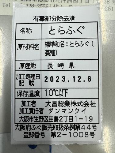 鹿児島県産養殖トラフグ 少量からでも注文承っております!