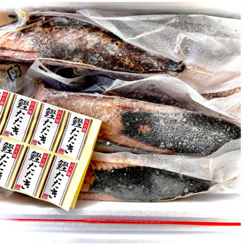 カツオタタキのご案内になります。 2.5kg上の原料サイズ。 3kgあたり8-9本前後入っております。 1本ずつ脱気パックにて個包装。 鮮度も良いです。 刺身、お寿司、カルパッチョに。 荷姿 3kgx3 産地 静岡