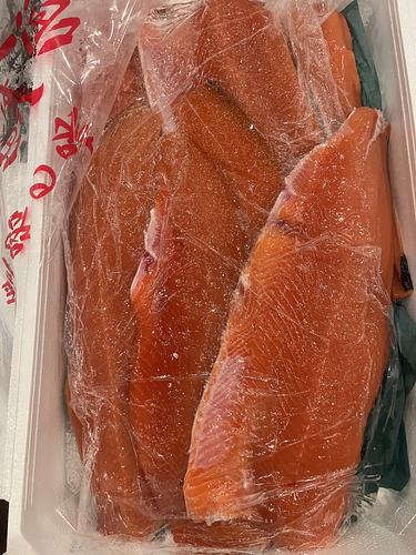 生秋鮭フィーレです。 5k 7〜9入り カマ取り、鱗取り、腹骨取りです。 色味良しのA品です❗️