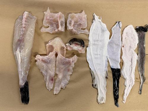 冷凍養殖トラフグ身欠き5匹 1.5~1.3kgサイズを加工してます。生ヒレ、生皮。吸水シートを入れて真空、-60℃アルコール急速冷凍。 キロ数は多少前後します‼️