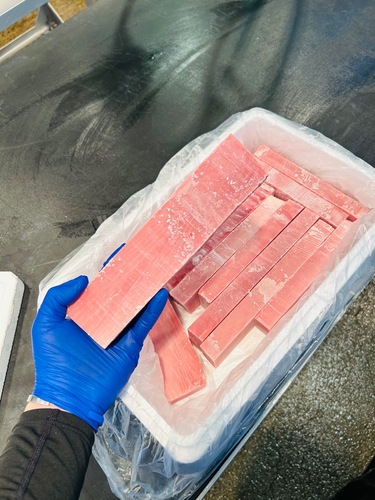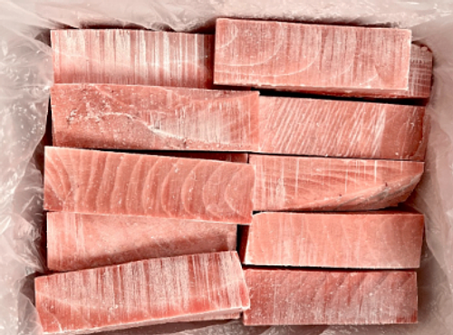 【使い勝手の良い商品です❗️】 韓国産 大平洋漁場 冷凍メバチマグロ 赤身柵 [ロング柵] 3k箱/約11〜13柵入 柵/約250~300g・約18〜24cm前後 生食用✨縮み✨色目良し 歩留まりを重視した製品です❗️ 少量規格の製品なので使い回ししやすく、 タイムパフォーマンスにも良いです。 ある程度、定型になってるので、 刺身に引くのも良し👌 スライスするも良し👌 です♪