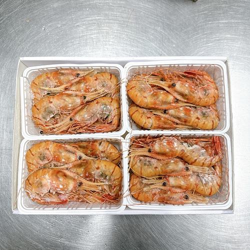 北海道噴火湾で漁獲、落部漁港に水揚げされた「ボタン海老」(和名トヤマエビ)を活きた状態で冷却し、サイズ選別、軽量、パック詰め後、プロトン凍結にしました。500グラムパックに10から13尾ですが、11尾、12尾中心です。