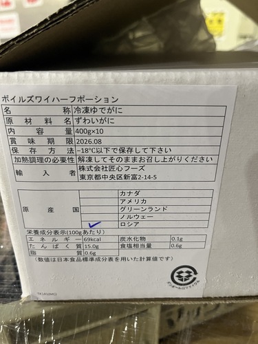 ボイルズワイガニの甲羅になります。 カナダ産ですのでロシアより品質上です。 身もぎっしり詰まっており、蟹味噌もございます。甲羅も見栄えよく使えますし、カニメニューの一品にぜひ!ズワイガニでこの価格はなかなかございません! 荷姿 1kg(4-6入)x3p x2合 (6kg) ※内袋一括表示は別添のためご希望の場合、ご発注時にお申し付けください。