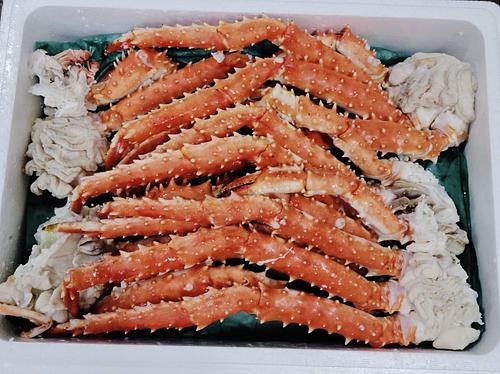 生タラバガニシュリンク7Lでございます。 1肩ずつラッピングしてあります! 生といえば、焼き、ボイルなどにより、 ボイル冷凍品より一層できたての美味しさが楽しめます。 身もしっかり入っており大変オススメです。 品質保持・乾燥防止のために氷の膜(グレーズ)がついています。 年末年始商材にぜひ! 7L:1肩あたり1.5kgサイズ! 2入×3合 他サイズもございます。 メッセージ等いただければご案内いたします。